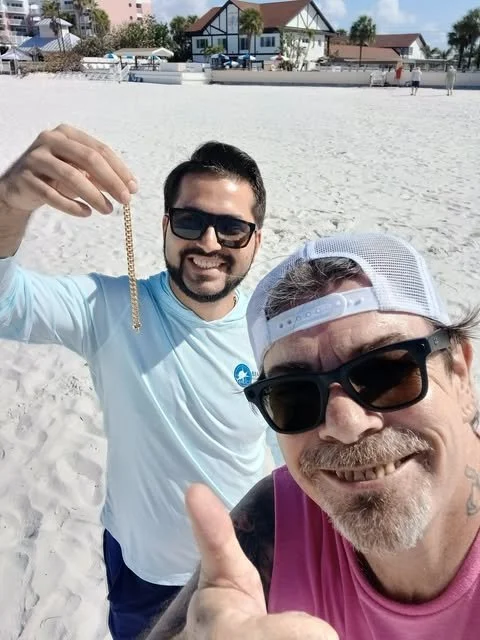 The morning after Hurricane “milton” passed, Jennifer & Hasan contacted Beach Metal Detectives to rent 2 machines, to tag team a wedding ring recovery. They were cleaning up hurricane debris when Hasan noticed it missing. Jennifer & Hasan picked up the machines and after a short 10 minute tutorial, off they went. Maybe 90 minutes later, Jennifer called...She had found the ring. Congrats you guys...well done. Case closed!